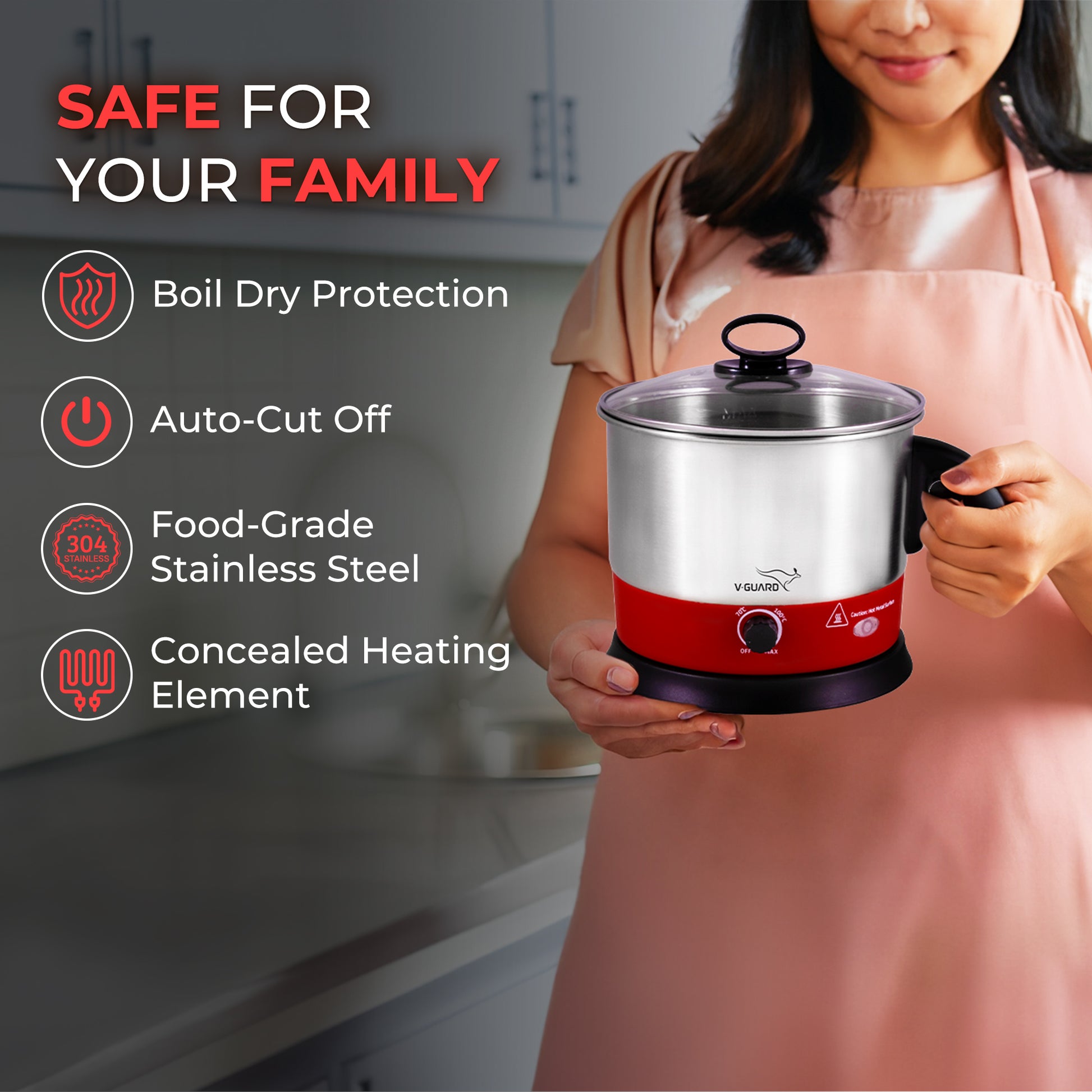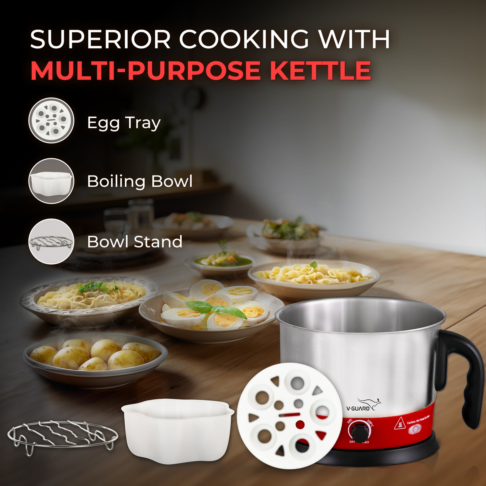 Are you always searching variety in food to break the monotony of routine lifestyle? But your busy & hectic schedule rarely allows you to spend time in kitchen? If that sounds like you, then V-Guard’s all new multi-cooker is just the kind of thing that you need. With it, making your favourite recipe has never been easier. It is designed to boil water, eggs, pasta, noodles, potatoes and so much more in super simple manner with its temperature control function. Its Keep Warm function kee...
