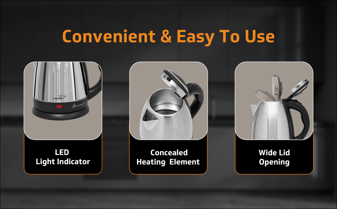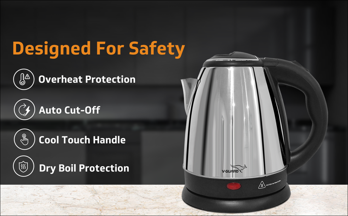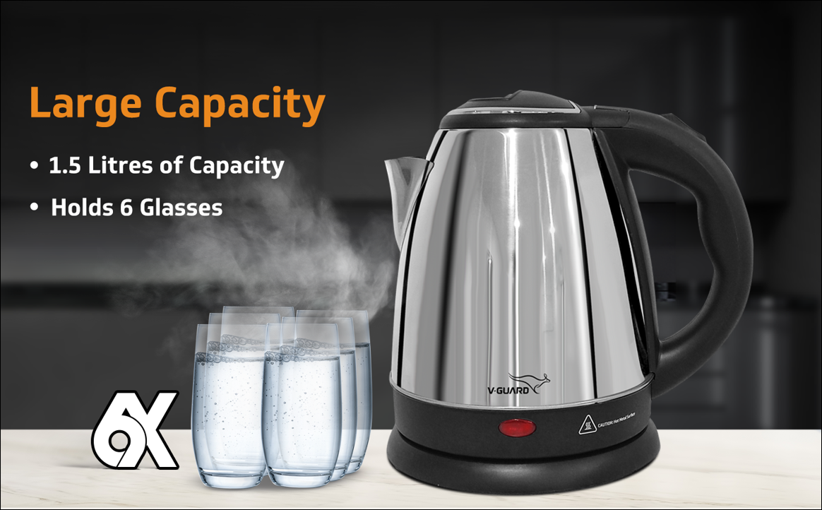 VKS15 Electric Kettle for hot water | 1.5 Litre 1500 watt, Stainless Steel Hot water kettle | Power Indicator | Auto cut-off