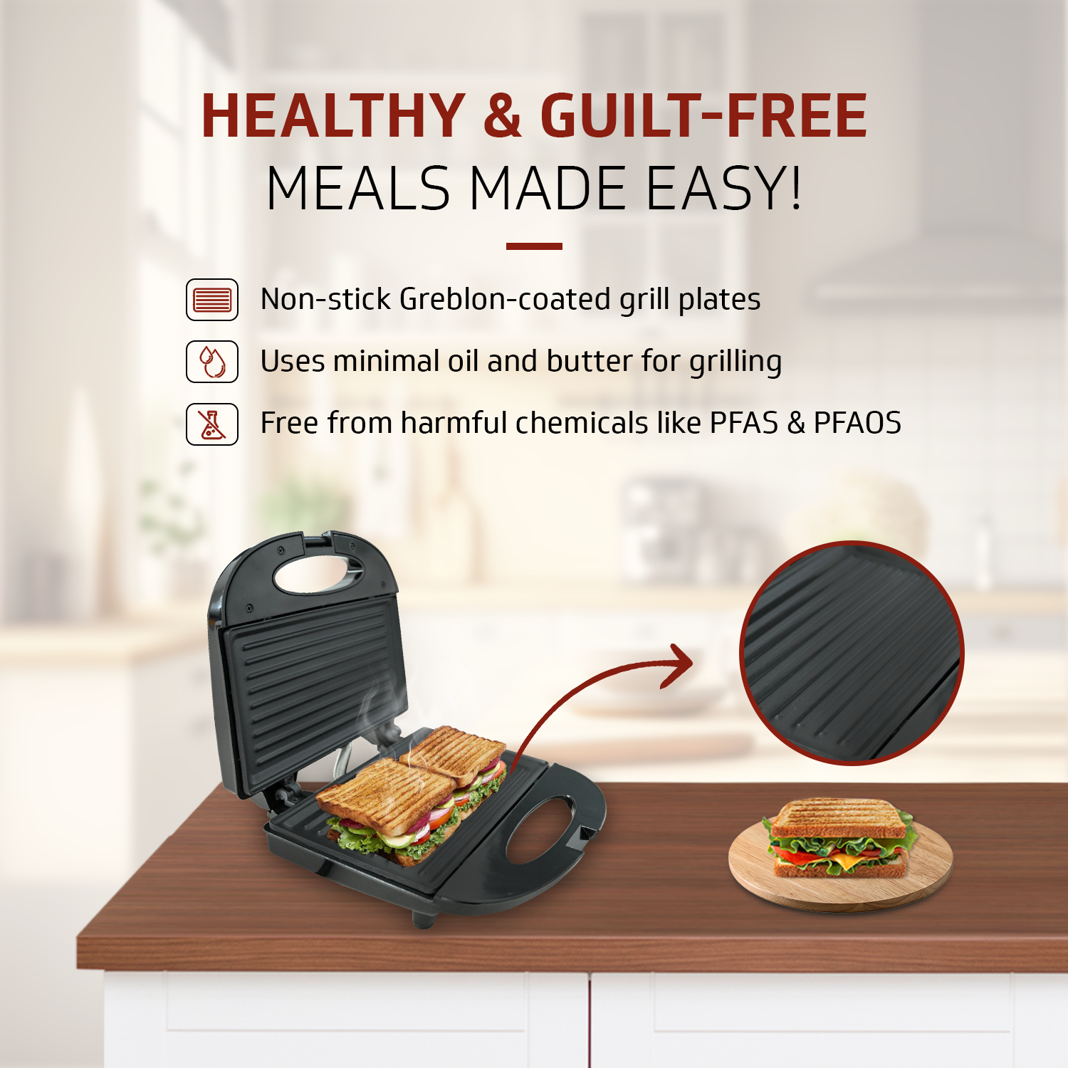 Who doesn’t enjoy a hot, delectable sandwich? Now, making a sandwich with your favourite filling is much easier! Wondering how? Here’s V-Guard’s all-new VSG80 with fixed grill plates to prepare delicious sandwiches. Its powerful 800 W heating element ensures quick and uniform heating, while its dual non-stick coating makes it easy to release the food and clean the appliance after cooking. Thanks to its cool touch handles! It prevents accidental burns, making it safe and easier to use, and ...