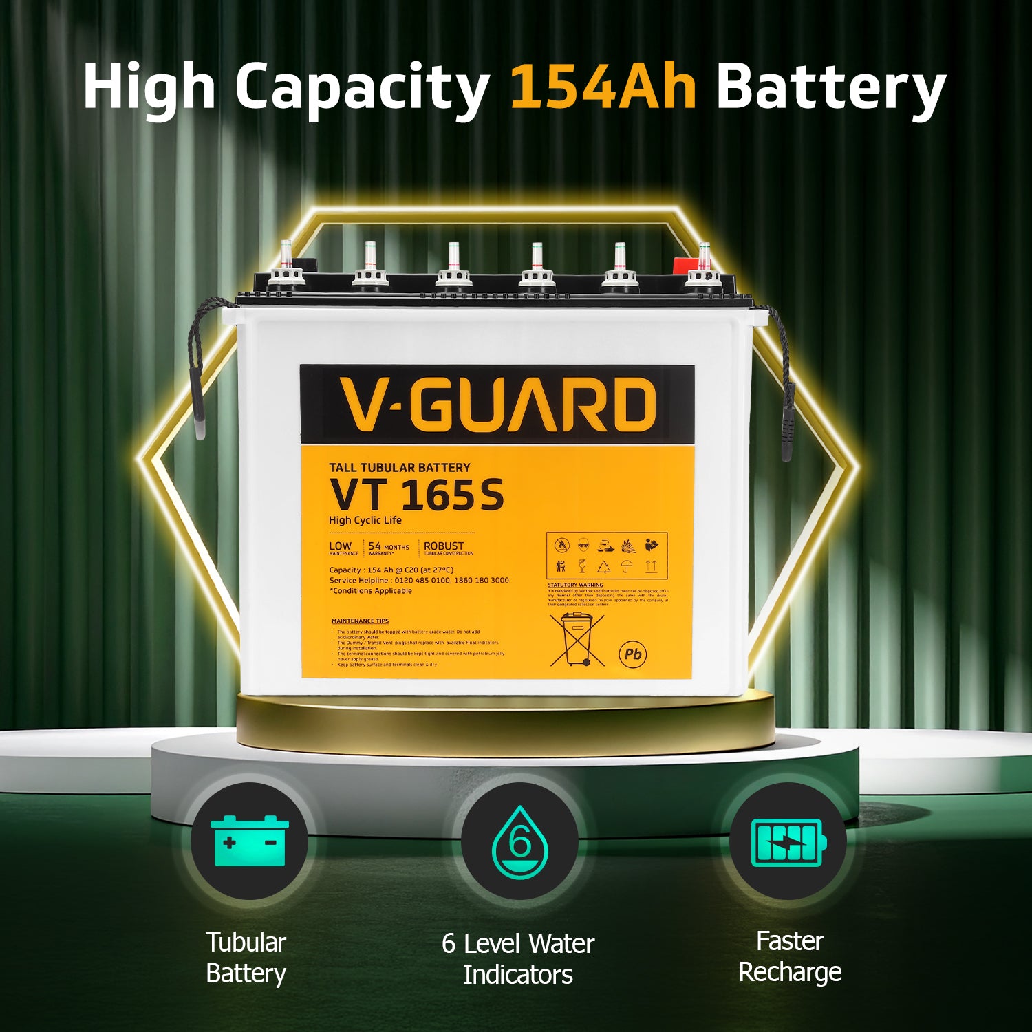 VT 165S Inverter Battery |Tubular Technology| High Backup Performance | 154Ah@C20 Capacity | 2.5 + 2 Year Warranty