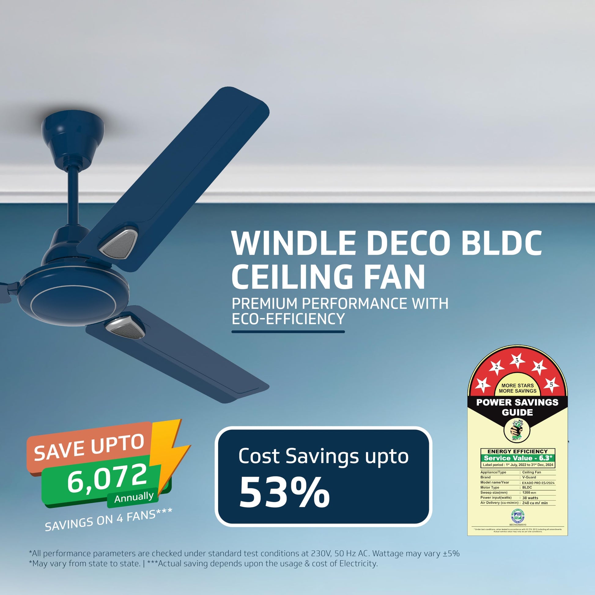 Windle Deco BLDC Ceiling fan with Remote, 1.2 m, 5-Star Rated, Admiral Blue