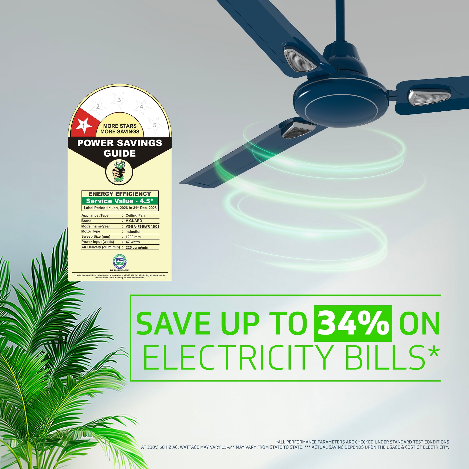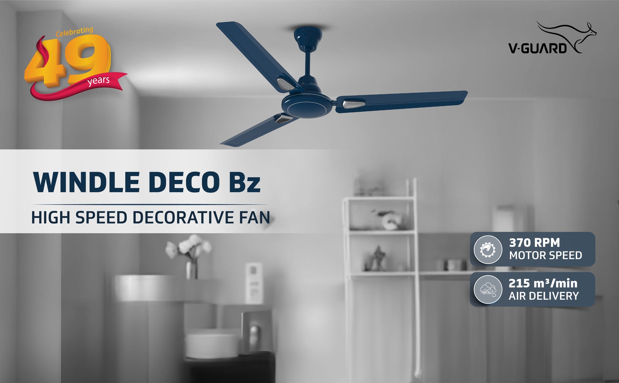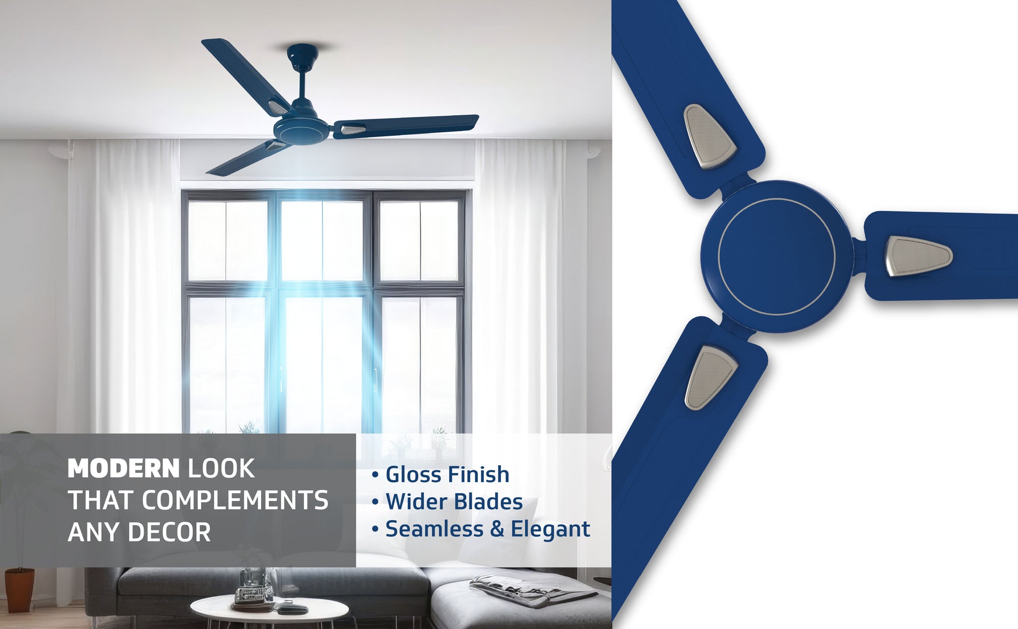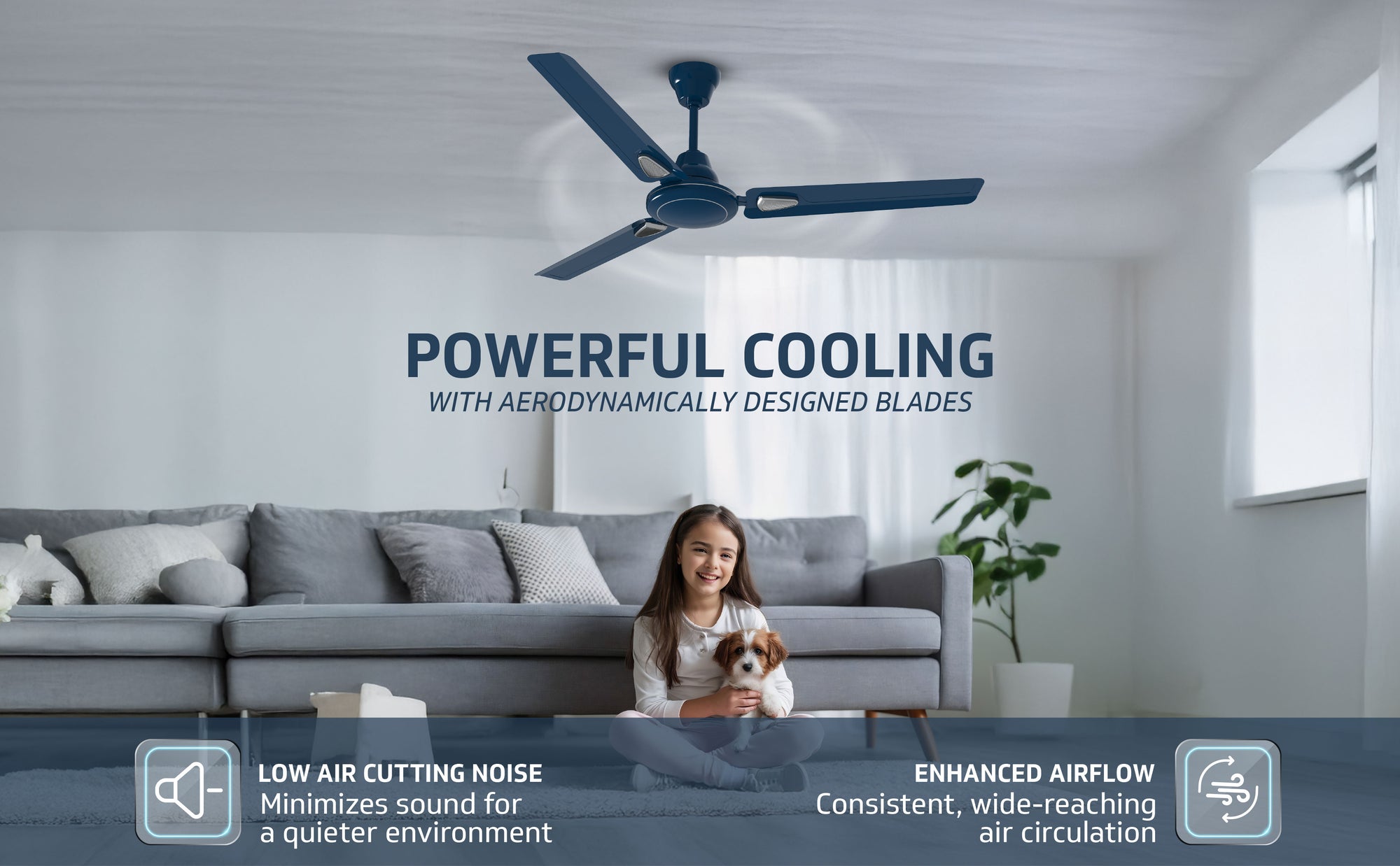 Windle Deco Bz Modern High Speed Ceiling Fan for Home 1.2 meters, Admiral Blue