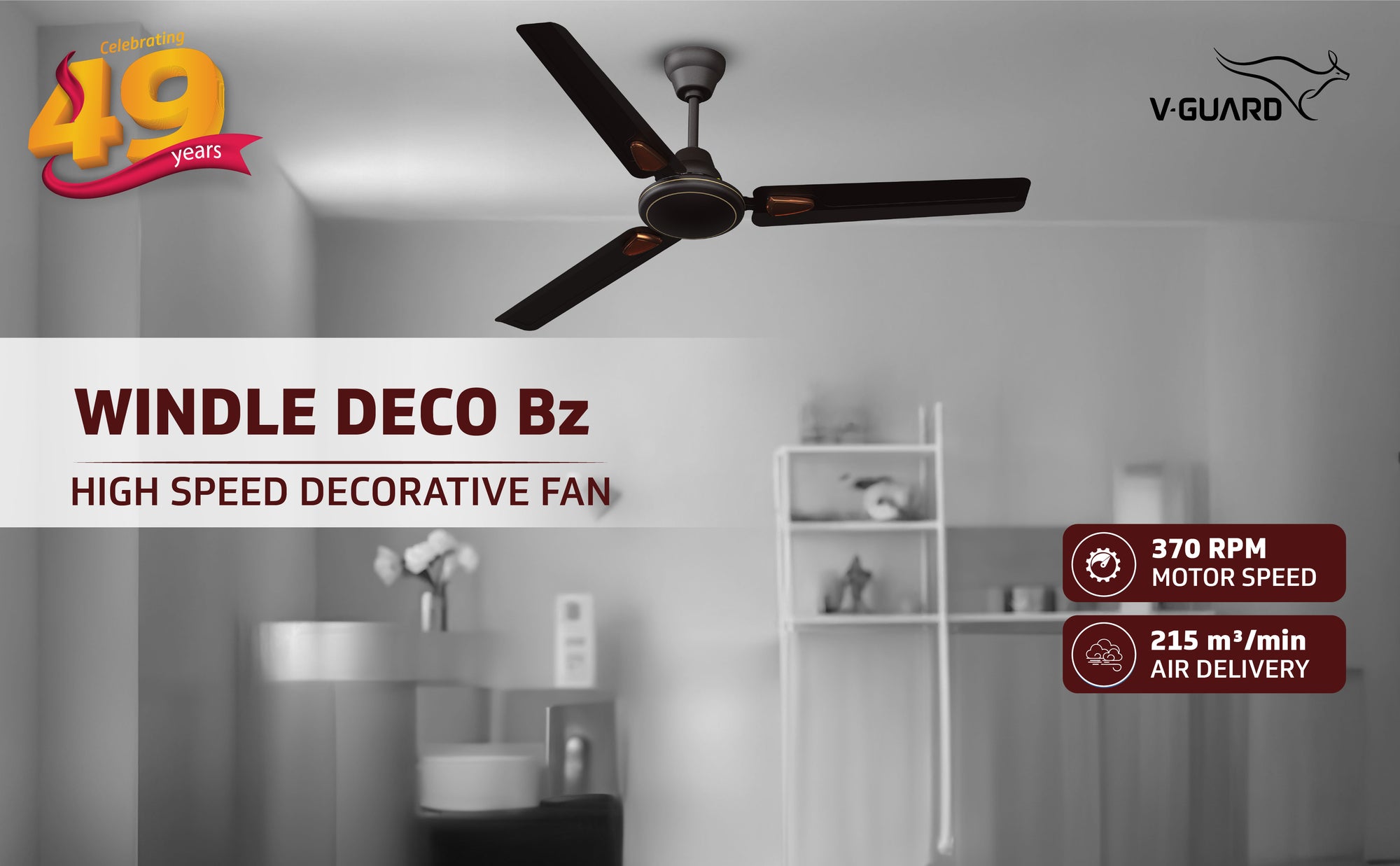The Windle Deco Bz ceiling fan combines powerful performance with elegant design. Equipped with a high-speed copper motor running at 370 RPM, it delivers superior air delivery for fast and effective cooling. Its 1200mm sweep ensures wide coverage, making it ideal for medium to large rooms. The blades feature unique decorative detailing with a powder-coated glossy finish, adding a stylish touch to your interiors. Built with durable aluminium and CRCA material and supported by double ball be...