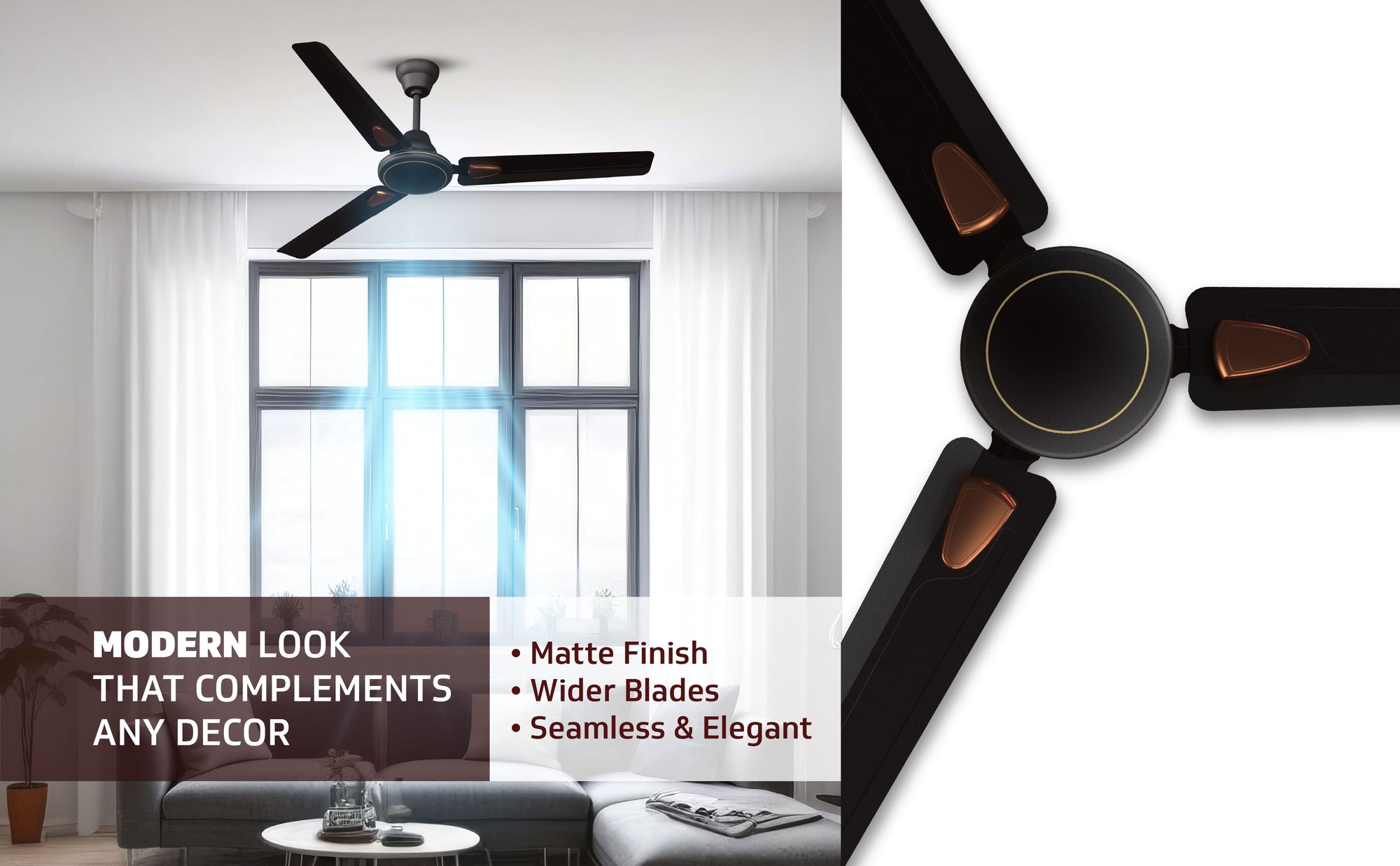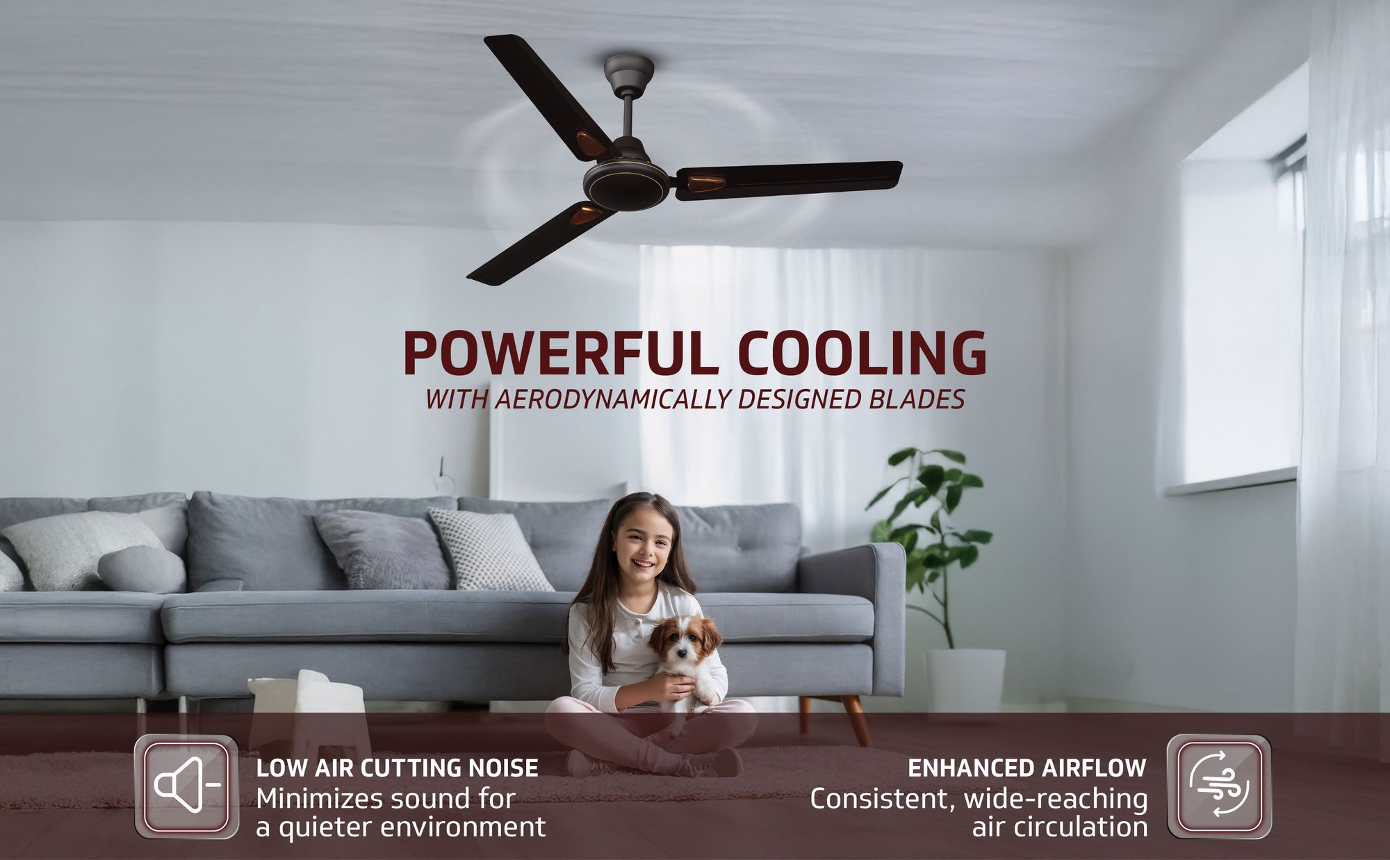 Windle Deco Bz Modern High Speed Ceiling Fan for Home 1.2 meters, Matte Brown